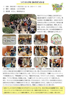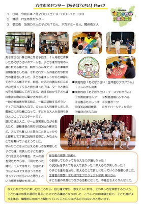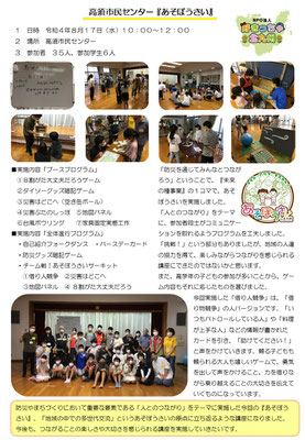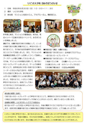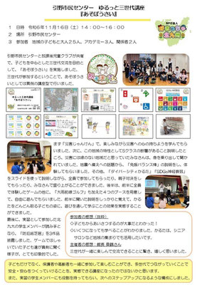 地域住民には子どもからお年寄りまで、様々な人が住んでいます。防災まちづくりにおいて、主に子ども達を対象とした「あそぼうさい」を取入れることで、多世代での取組みが可能となります。